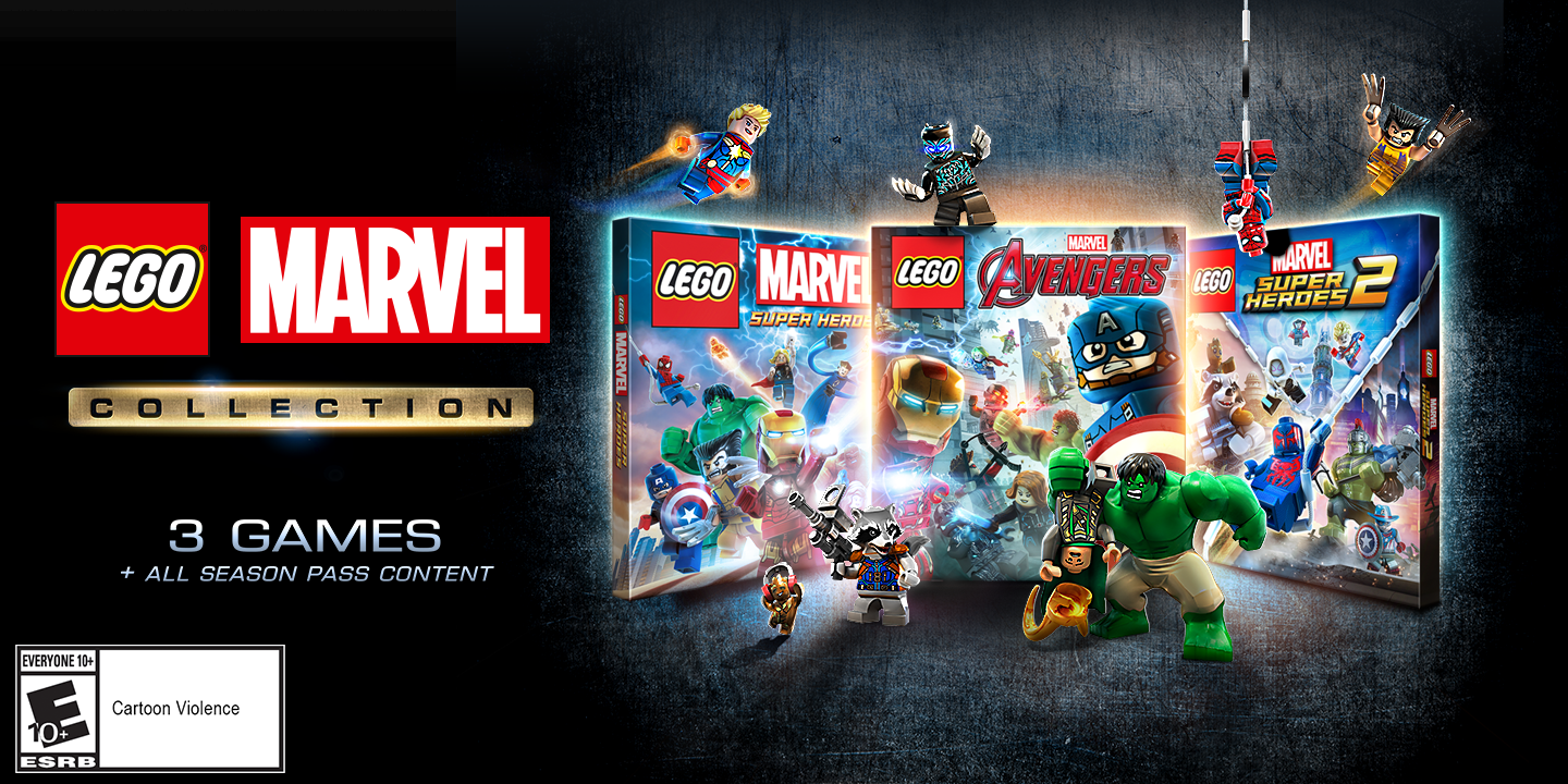 The LEGO® Marvel Collection features three action-packed LEGO® Marvel games: LEGO® Marvel Super Heroes, LEGO® Marvel's Avengers, and LEGO® Marvel Super Heroes 2, plus all season pass content for each game!